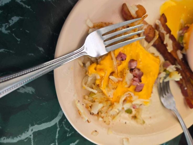 I ate the, loaded hash browns, perfection! The potatoes were crispy and moist, like hash browns should be. The flavors of the ham and cheese melted together so it was gooey and salty without being too much salt or slime of cheesy. The back hint of flavor of peppers and onions plus the seasonings, the whole was an experience worth the trip over the bridge to Tennessee and through the streets by GPS to find this amazing experience. If you go, please be respectful; these people have a nice, clean place. If you can’t add to the harmony, just don’t go.